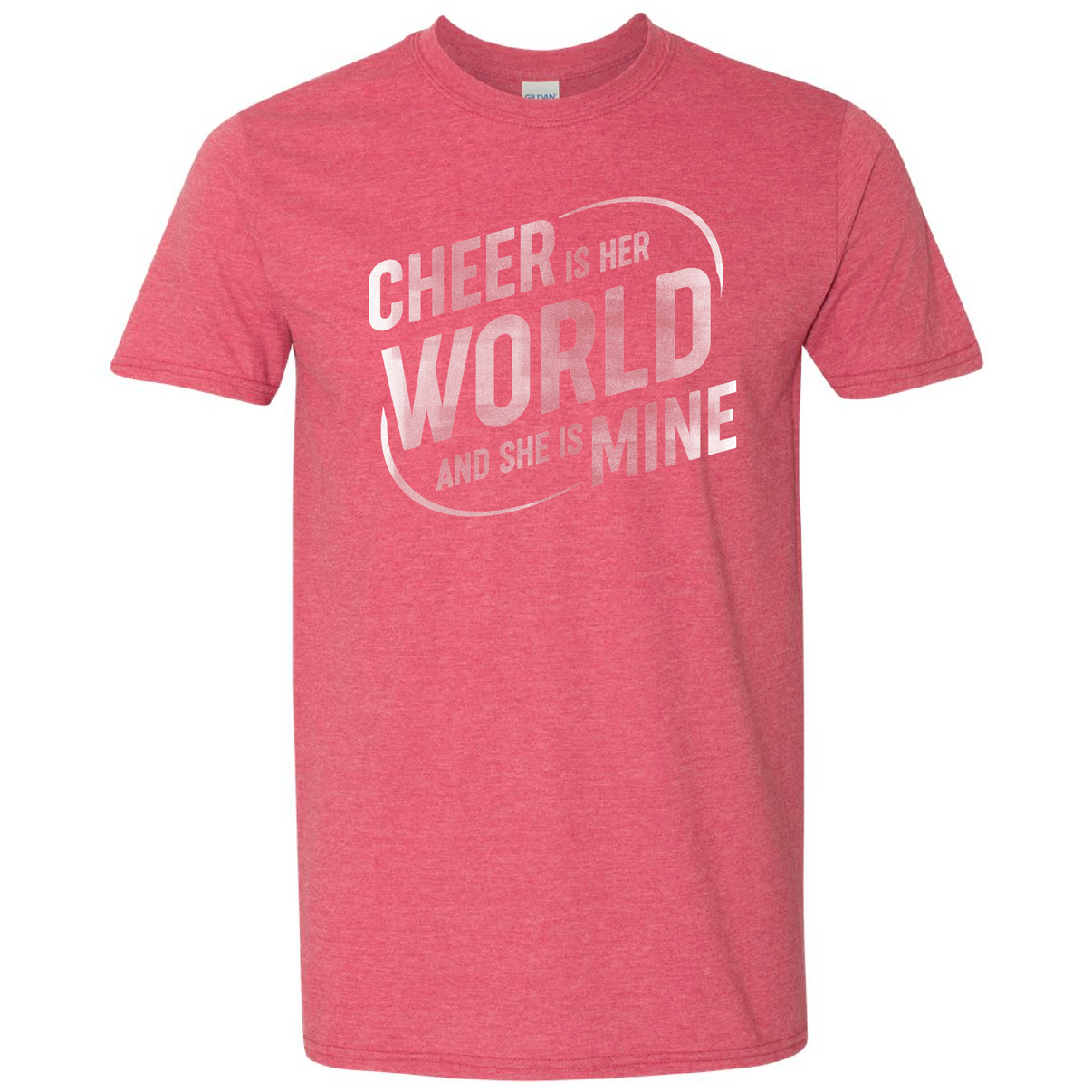 For every parent whose cheerleader is their whole world. Understated, vintage style print. Heather Cardinal - Gildan Softstyle Tee 4.5 oz. 100% ring spun cotton, 30 singles Modern classic fit High...